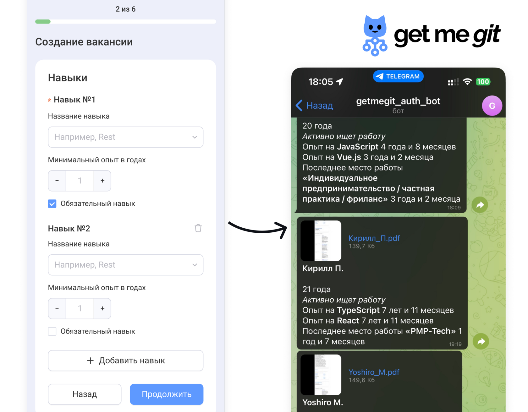 Система мэтчинга разработчиков и компаний с авто-рассылкой в Телеграм